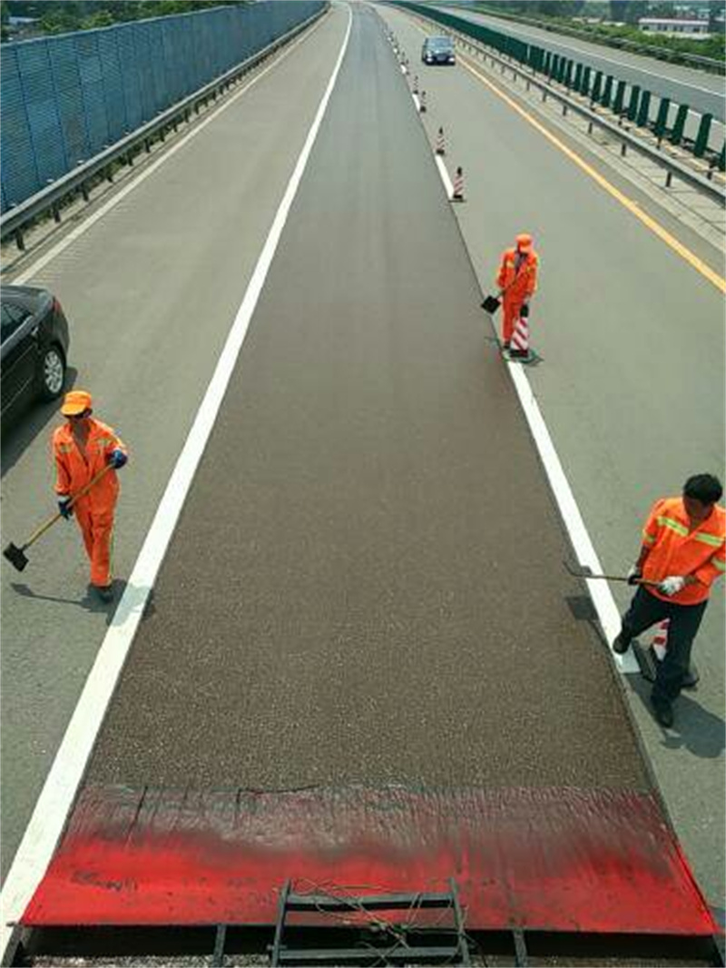 應用范圍:     砂封層主要應用于高速公路,一、二級公路瀝青路面的預防性養護。可以進行美化路緣、路肩施工。經過砂封層施工后可以改變新舊路面的外觀及顏色。施工說明:砂封層是一種層鋪的施工工藝。采用同步碎石封層設備將聚合物改性粘結材料和骨料金剛砂同時撒布施工的一種施工工藝。粘結材料應選擇高濃高粘且具有一定滲透型和還原性。骨料需選擇耐磨的金剛砂。技術特點:(1)常溫施工,無需加熱,節能環保。(2)用來解決瀝青路表面瀝青老化出現的貧油狀況。(3)解決原路面出現的麻面、松散掉粒、輕微裂縫等現象。(4)新路面可以起到防水的作用。(5)增加路面摩擦系數和耐磨性能。施工工藝:封閉交通→清理路面→病害處理→砂封層施工→養生→開放交通